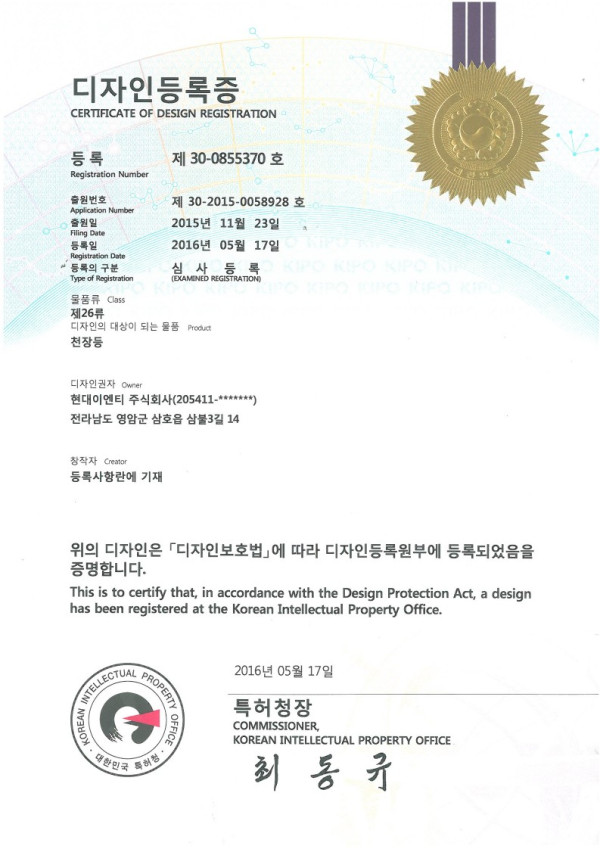 무궁화 천장등 디자인등록 > 산업재산권현황