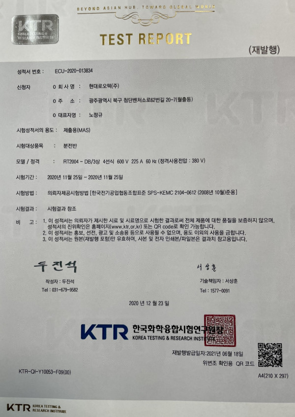 형식승인 분전반 시험결과지