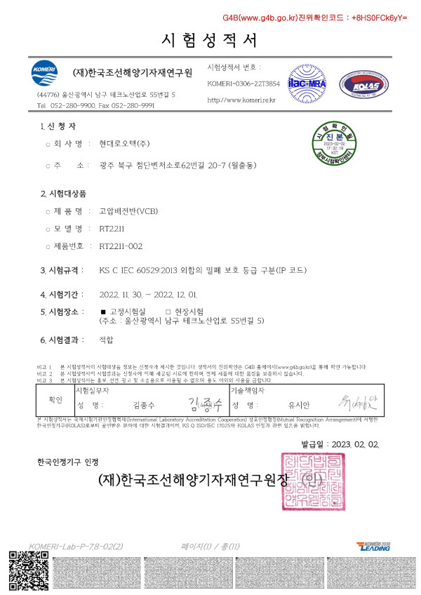 고압배전반(VCB) 시험성적서 > 산업재산권현황